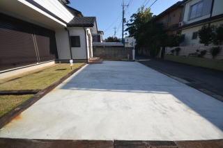 お庭は広く舗装され、間口も広く、車も並列で停められます。一部は芝生も敷かれ、綺麗に整えられています。