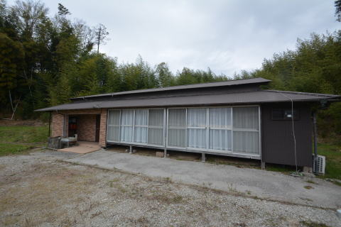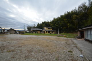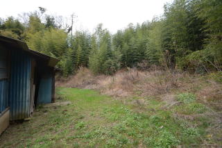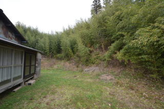 母屋・裏側。敷地北西側には、林が広がっています。
