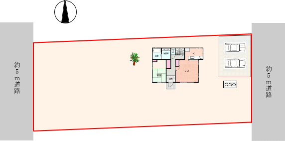 西側・約5m道路。海まで徒歩約5分で、海好きの方にもおすすめの物件です。