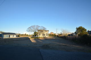 西側から。敷地は、東西の二面の道路に面しています。