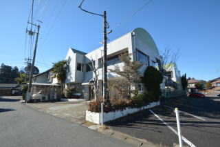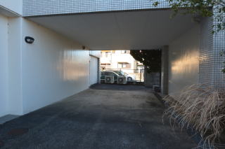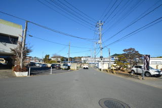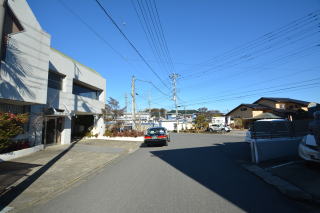 東側から。閑静な住宅地ですが、北東側は駐車スペースになっています。