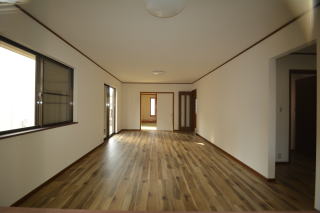 LDK20帖 キッチンは右奥にあり、生活感が隠せそうです。