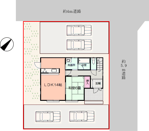 北東約5.9m・北西約4m道路 |